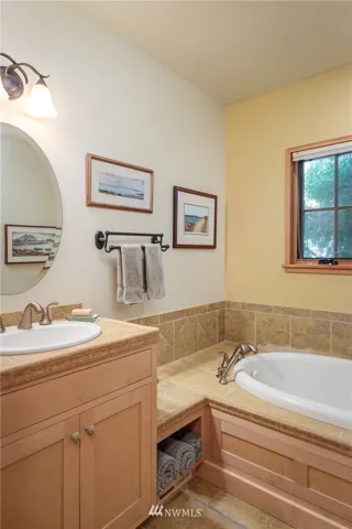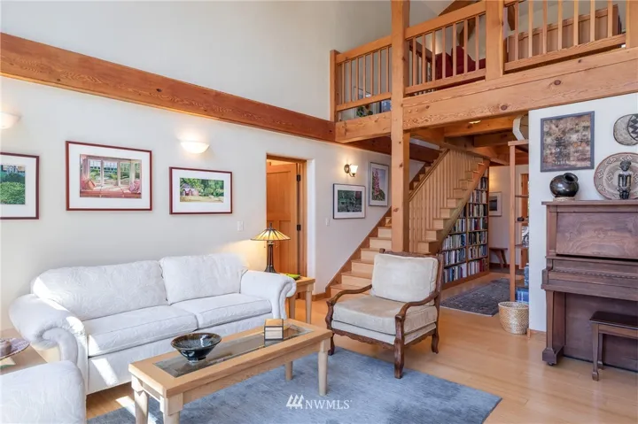 STUNNING WESTSIDE TIMBERFRAME – Privately sited on sunny 5 ac with 2BD, 2BA on 213 ft WF. This energy efficient, passive solar home w/PV, built with sustainable woods for great indoor air quality, exposed beam joinery, radiant bamboo flrs, lots of storage, walk in pantry & office/sleeping loft. Organic garden beds & fruit trees with drip irrigation + creative erosion control landscaped pond. Large patio to enjoy water & sunset views. A very private & serine setting yet not far from the Village.