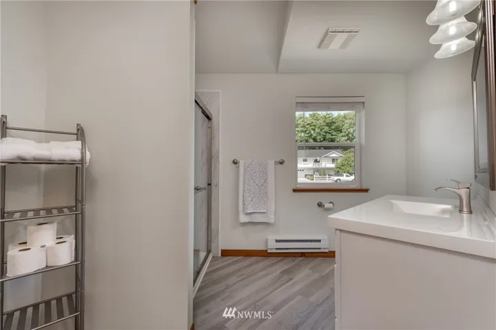 Large picturesque windows look out to Crockett Lk. and Admiralty Bay. 2 bedrooms with an extra room for guests in Admiralty Cove. New vinyl windows, Hardy Plank siding, remodeled bathrooms, and the roof is only 5-years old. The master bedroom has a large walk-in closet off the newly remodeled bathroom. There is a spacious family room downstairs along with a huge shop or rec room that runs the length of the home. Includes 11,490 Sq. Ft. lot next door, enjoy one side of the block all to yourself.