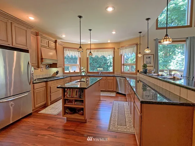 Surround yourself in this quintessential private NW setting w/majestic cedar & maple trees on 5ac. Custom craftsman style home boasts open concept, massive kitchen w/granite counters, gas range, ss appl & lg walk-in pantry. Kitchen opens to family room w/ wall of windows, cathedral ceiling & stone frpl that heats entire home. 3bdrms plus a loft, office & media rm. Relax in the lg master suite w/private balcony, over-sized soaking tub & large walk-in closet. Popular Griffin & Olympia schools.