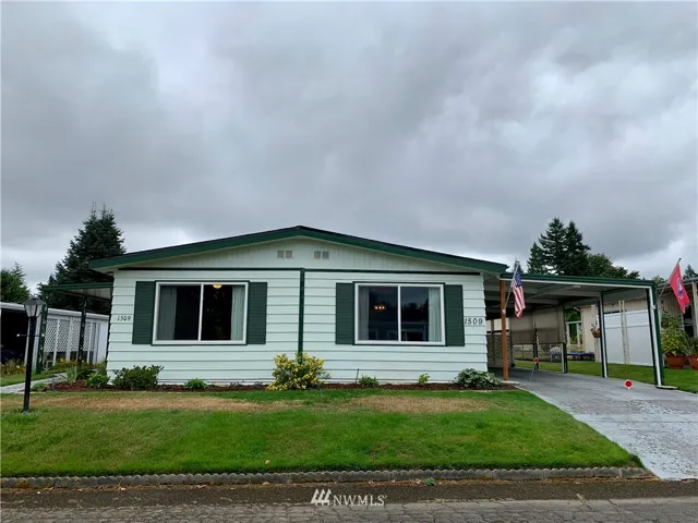 Nice 3 bedroom home in 55+ Park! Features open concept, formal dining area, built in hutch & lots of windows for extra light. Kitchen shows great with built in oven, pantry, island w/eating bar, laminate wood floor, plenty of counter space & all appls. included. Separate family room, huge master bedroom, both bathrooms have been updated. Newer heat pump/AC, furnace & 30 yr roof. Landscaped yard, storage building, & over sized carport. Home has a nice floor plan. Close to shopping & I-5!