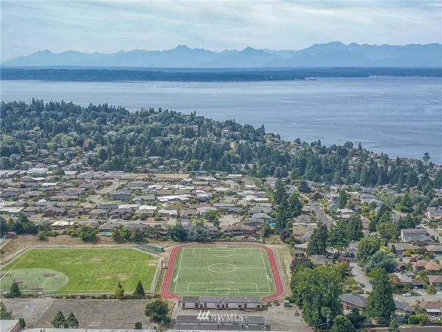 Come home to this ideally located, 3 BR, 1.75 BA Cape Cod on a generous, park-like lot. Living room and bedrooms boast beautiful golden oak floors. Oversized picture windows on the main open to sunsets and Olympic views. A fully finished basement with its own fireplace and loads of storage is spacious and versatile. Have room to both entertain guests and play lawn games in a grand and private backyard. Tucked away from city traffic but with easy access to downtown and 99.