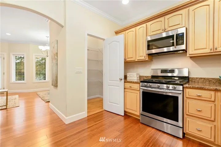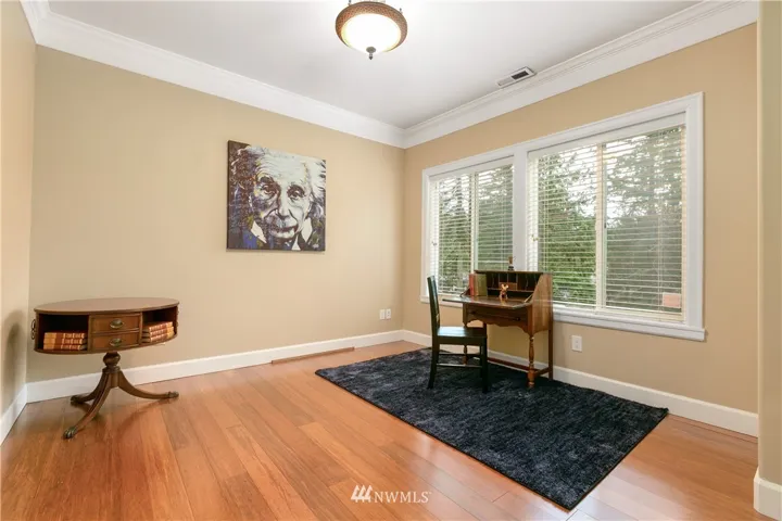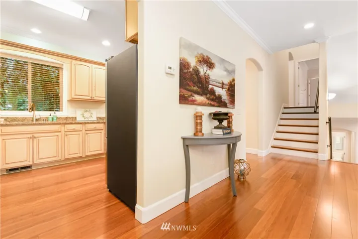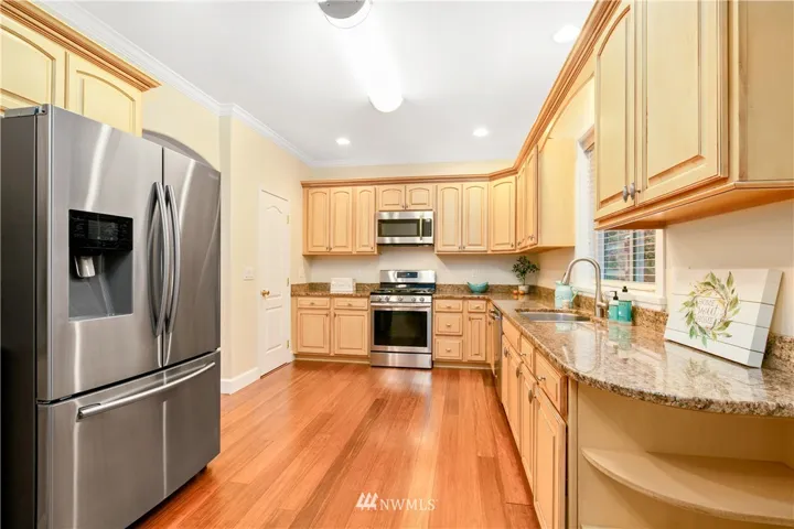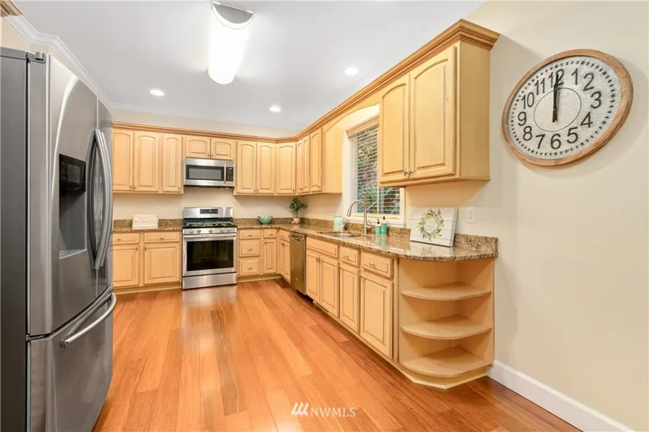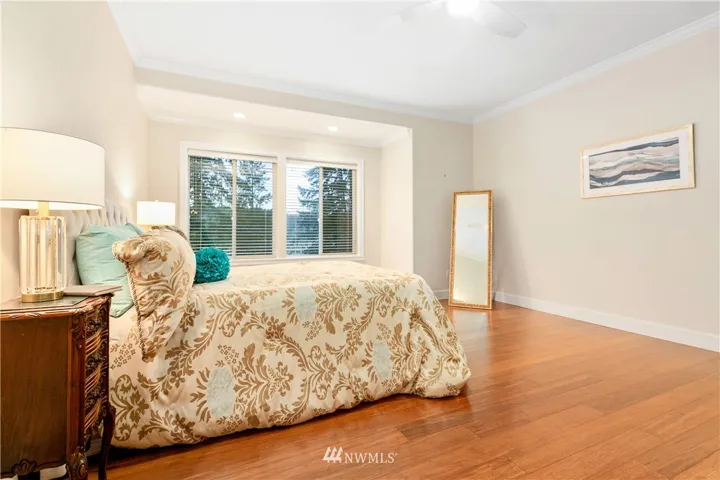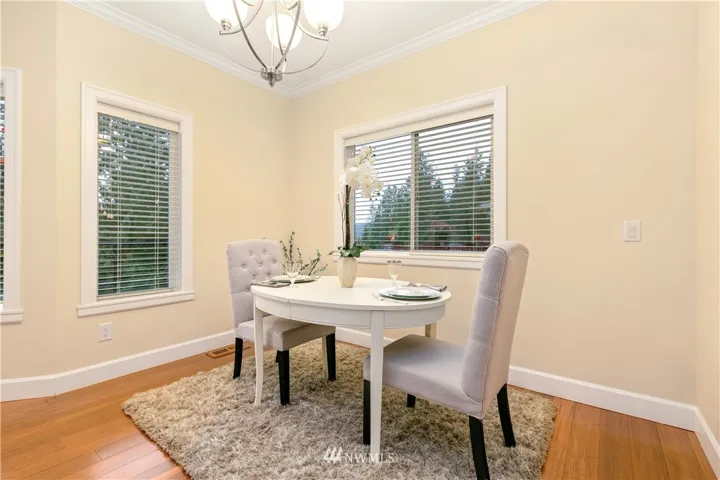 Upscale elegance & quality construction in this spectacular, sunny Sudden Valley home. Over 3,000 square feet! Bamboo floors, all new appliances. Entry level w/ office, 3/4 bath + laundry. Main floor w/ living, 2 dining areas & kitchen w/ pantry. Formal living w/ gas fireplace & master suite upstairs; 2 bedrooms (one w/ en-suite), loft, full bath & covered balcony on uppermost level. Backs up to greenbelt. Spacious balcony & partially covered deck. Walk to pools, gym, library, beaches & more!