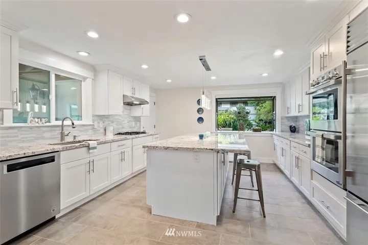 Move in ready 5 bed 2.75 bath, 3181 sf, new designer kitchen with modern light feature, Sub-Zero refrigerator, stainless steel appliances, granite kitchen counter with eating space. Updated bathrooms, new windows, vaulted ceiling & gleaming hardwood floor though out the house. A sauna, three decks (one off master bedroom). Seasonal lake view. Two brick fireplaces, Private back yard perfect for play& entertaining. Huge bonus space on third lower level for a storage, shop, home gym. Cul-de-Sac St.